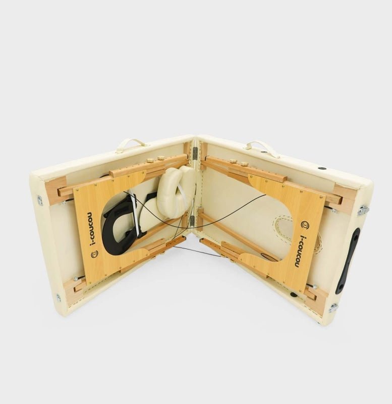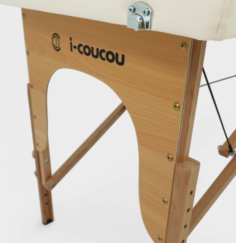 Kosmetické lehátko i-coucou je ideální pro kosmetické procedury a masáže. Jeho nízká hmotnost a kompaktní rozměry ve složeném stavu usnadňují jeho přepravu a skladování. Jeho odolná konstrukce z bukového dřeva v kombinaci s ocelovými lany zajišťuje stabilitu a bezpečnost. Je to perfektní kombinace funkčnosti, mobility a pohodlí.